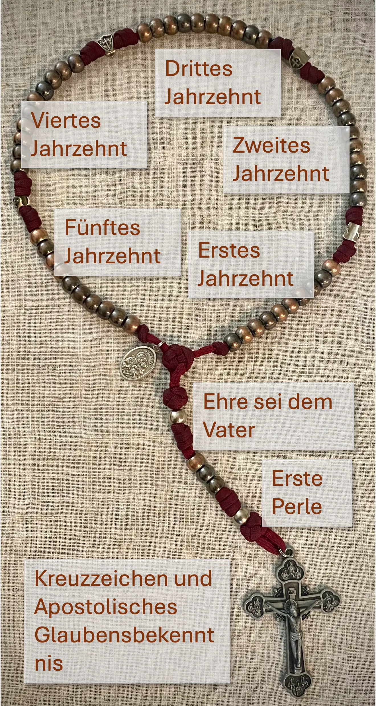 - Zu Beginn jedes der fünf Jahrzehnte wird das Geheimnis genannt und das Vater unser gesprochen..
