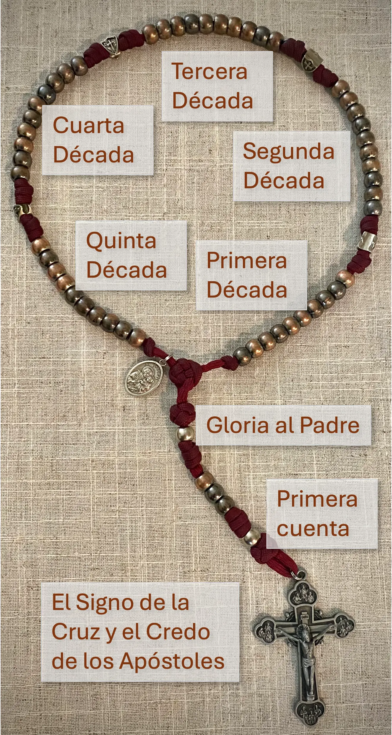 - Al final de la quinta década, se rezan el Salve Reina, el Acordaos, el Apóstol San Miguel y las Letanías Lauretanas.